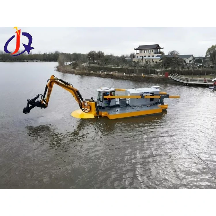 Су арамшөптерін жинау және қоқыстарды шығару: Жинау тырмаларымен немесе шелектермен жабдықталған ол су өсімдіктерін, қалқымалы қоқыстарды және өнеркәсіптік шөгінді тоған шламдарын тиімді түрде тазартады.