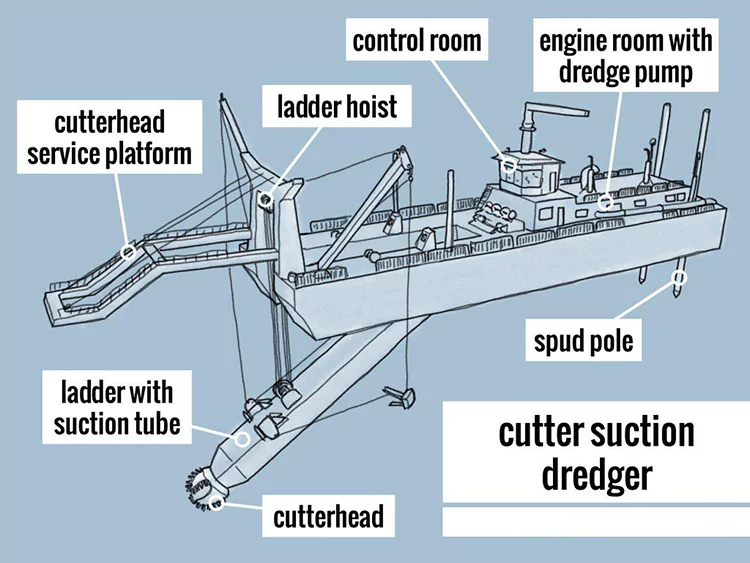 Кескіш жүйесі: Алдыңғы жағында спиральды кескіш орнатылған, ол жоғары жылдамдықпен айналу арқылы өзендерде құмды қопсытады және ұсақтайды және құм, саз және тас сияқты әртүрлі топырақ түрлеріне жарамды.